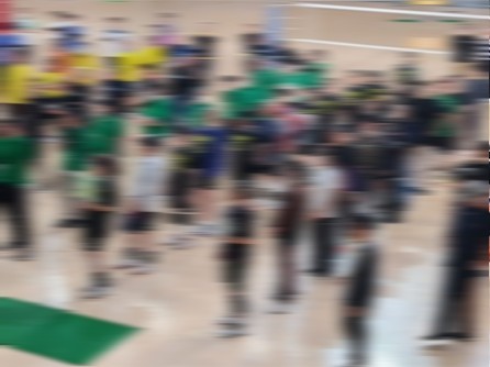 東京体育館に到着しますと、各チームがすでにフロアーに待機していました。そして開会式が始まりました。銀杏2025の勇姿もいます。
