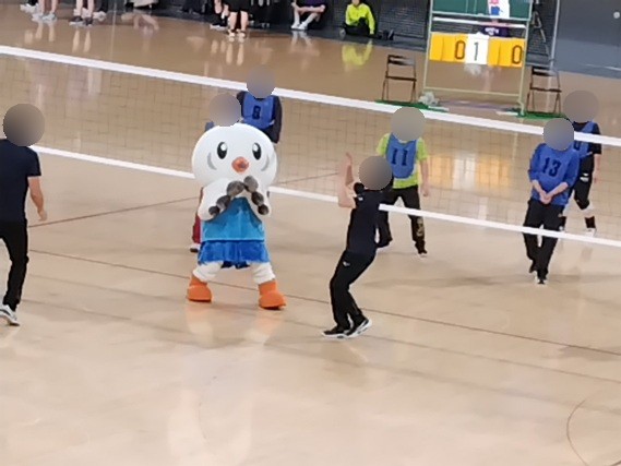 さて、お昼休みの間、コートでは練習試合をしていたのですが、大会マスコットのゆりーとクンも大活躍。