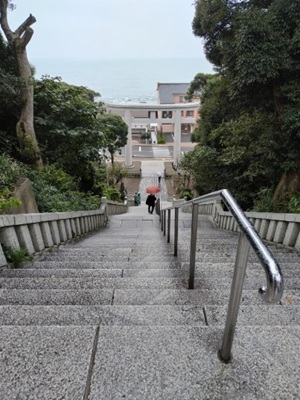 ちょっと雨模様でしたが、この100段と言われる階段を上りました。
