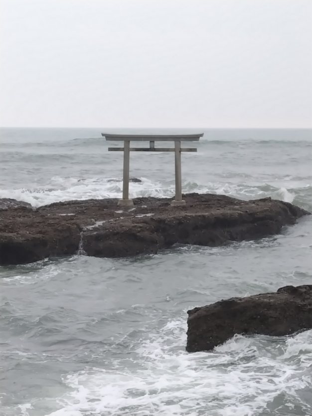 波が打ち付ける中に立っている鳥居は、なんとも荘厳な感じがしました。