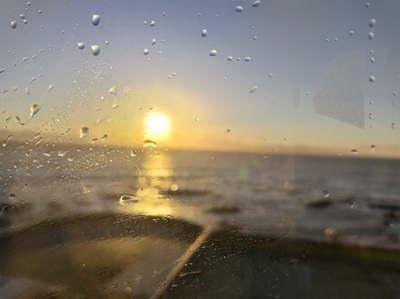 若干眠気が残る中待っていると、部屋の窓の外に朝日が昇るのが見えました。