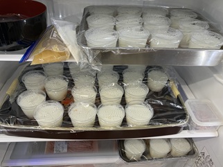 杏仁豆腐は、昼食会実行委員が、前日に作って冷蔵庫に入れておきました。