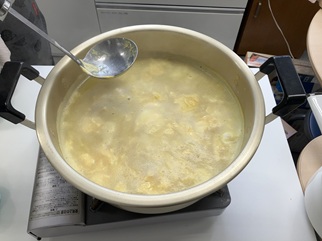 コーンクリームスープのほうも出来上がりました。