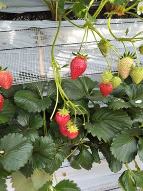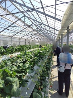 まずは三芳パーキングエリアで休憩、その後に「狭山ベリーランド」に行き、いちご狩りをやりました。