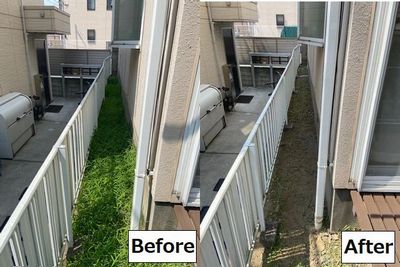 だいぶきれいに草を取ったところで、ビフォー&アフターの写真を撮っておきました。