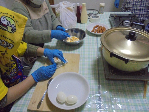 ●たまごが冷えたら殻をむき、たまごを細かくしてマヨネーズ、塩コショウで味を整える
